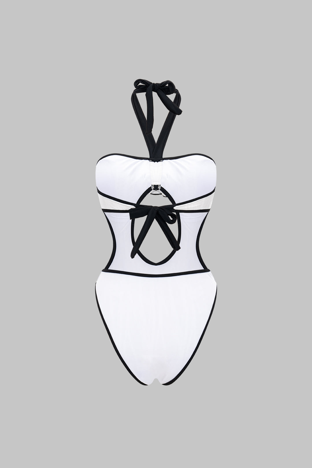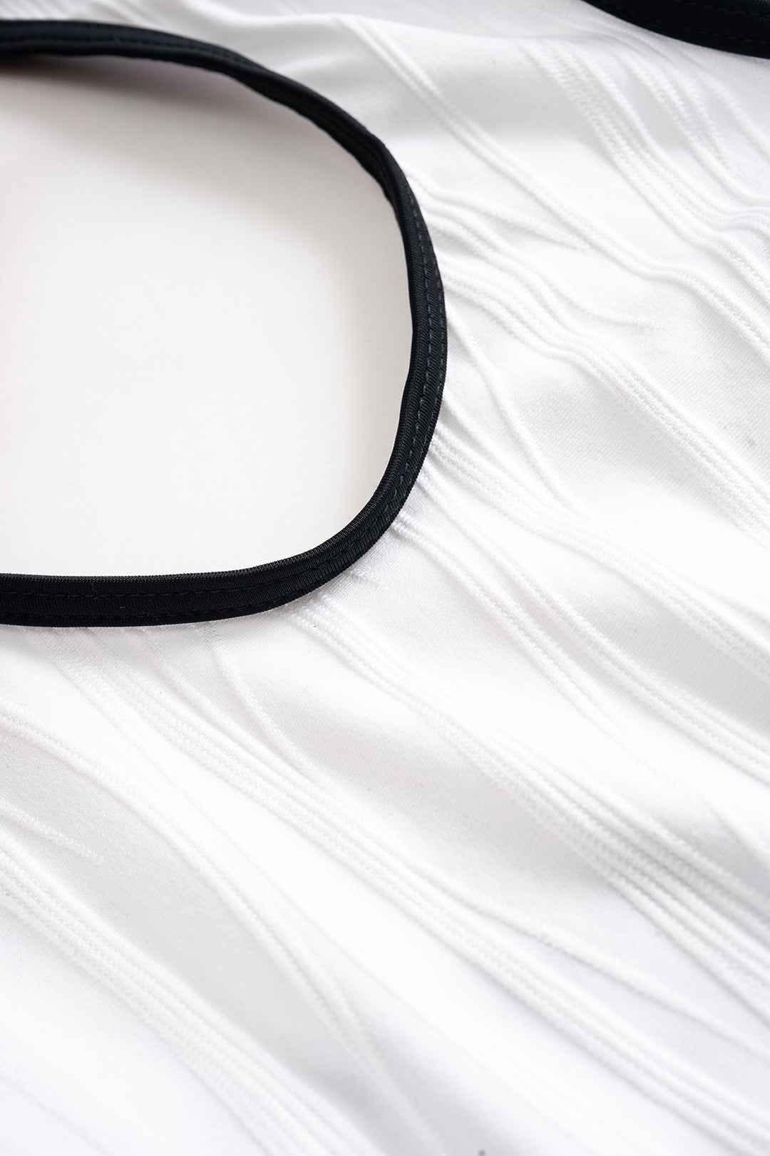 Escote: Escote cabestro con diseño estructurado y líneas definidas.