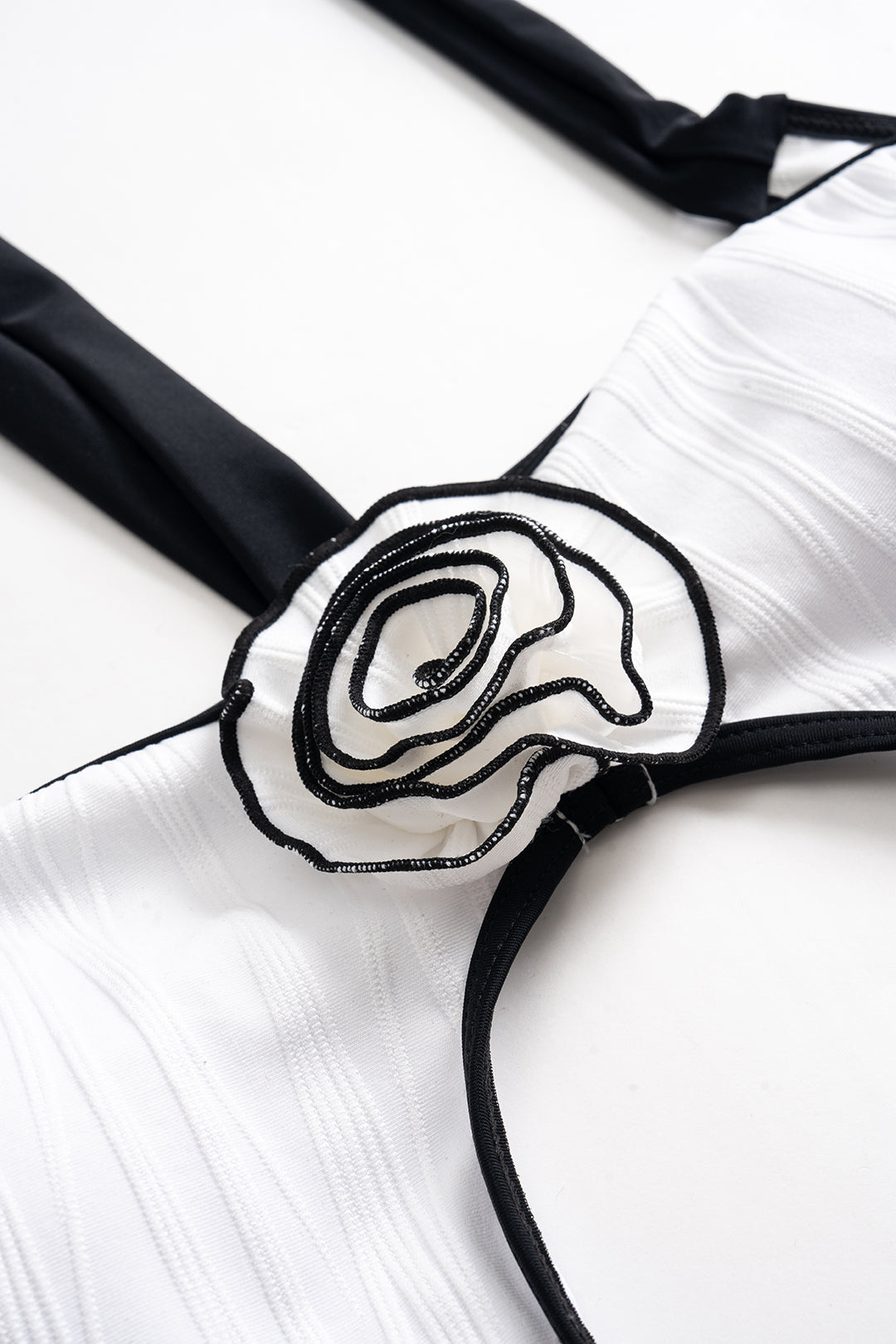Detalles adicionales: Aplicación floral decorativa en el centro y ribetes en contraste que crean un efecto visual moderno y refinado.