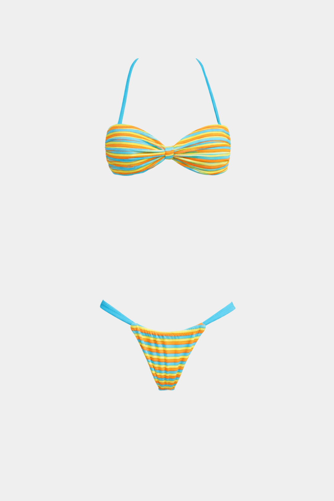 Diseño: Bikini de dos piezas con estampado a rayas y líneas limpias, ideal para un look fresco y contemporáneo.