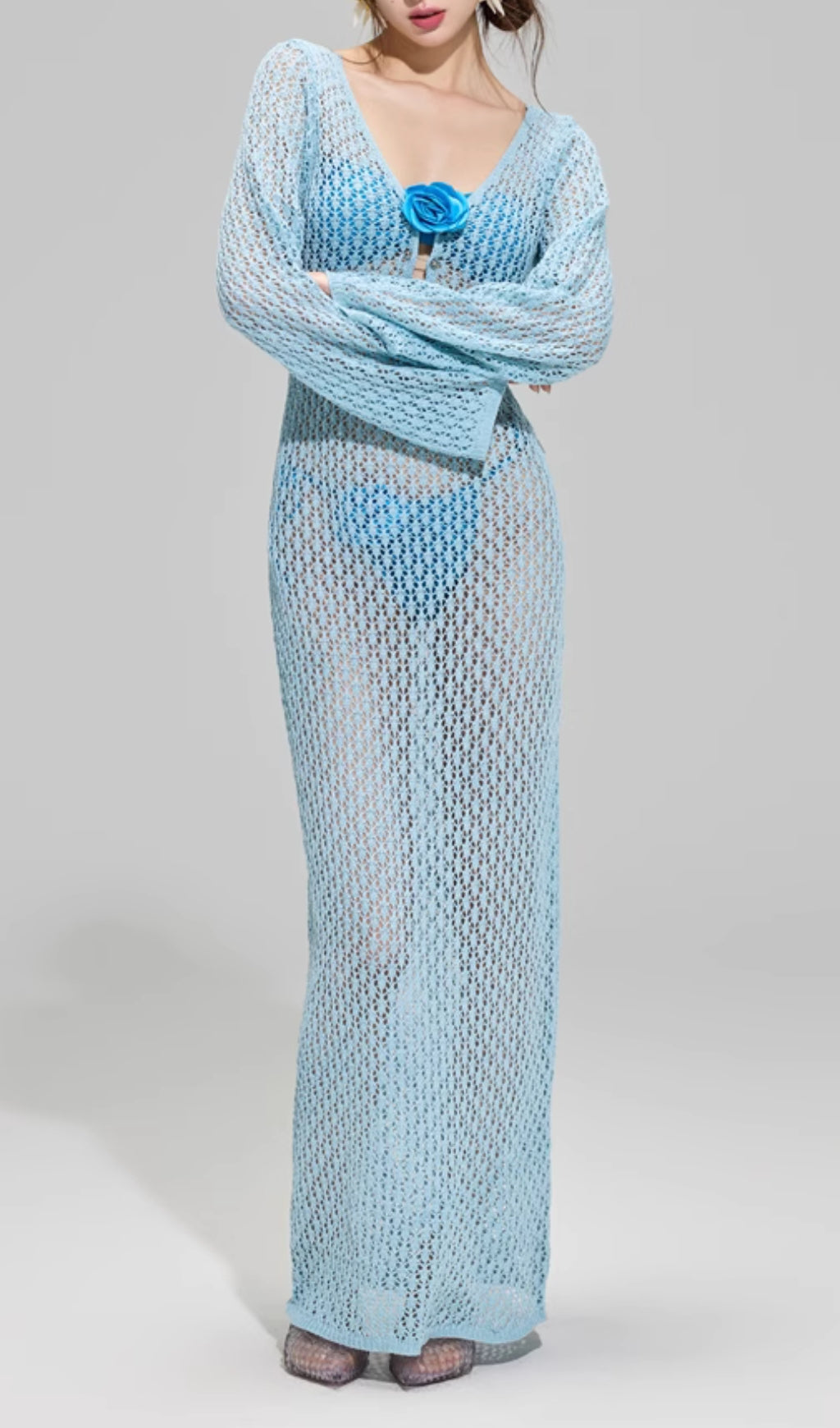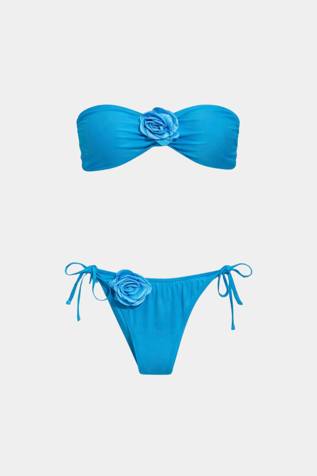 Conjunto de baño compuesto por top bandeau y pareo largo semitransparente, pensado para un look elegante y cómodo.