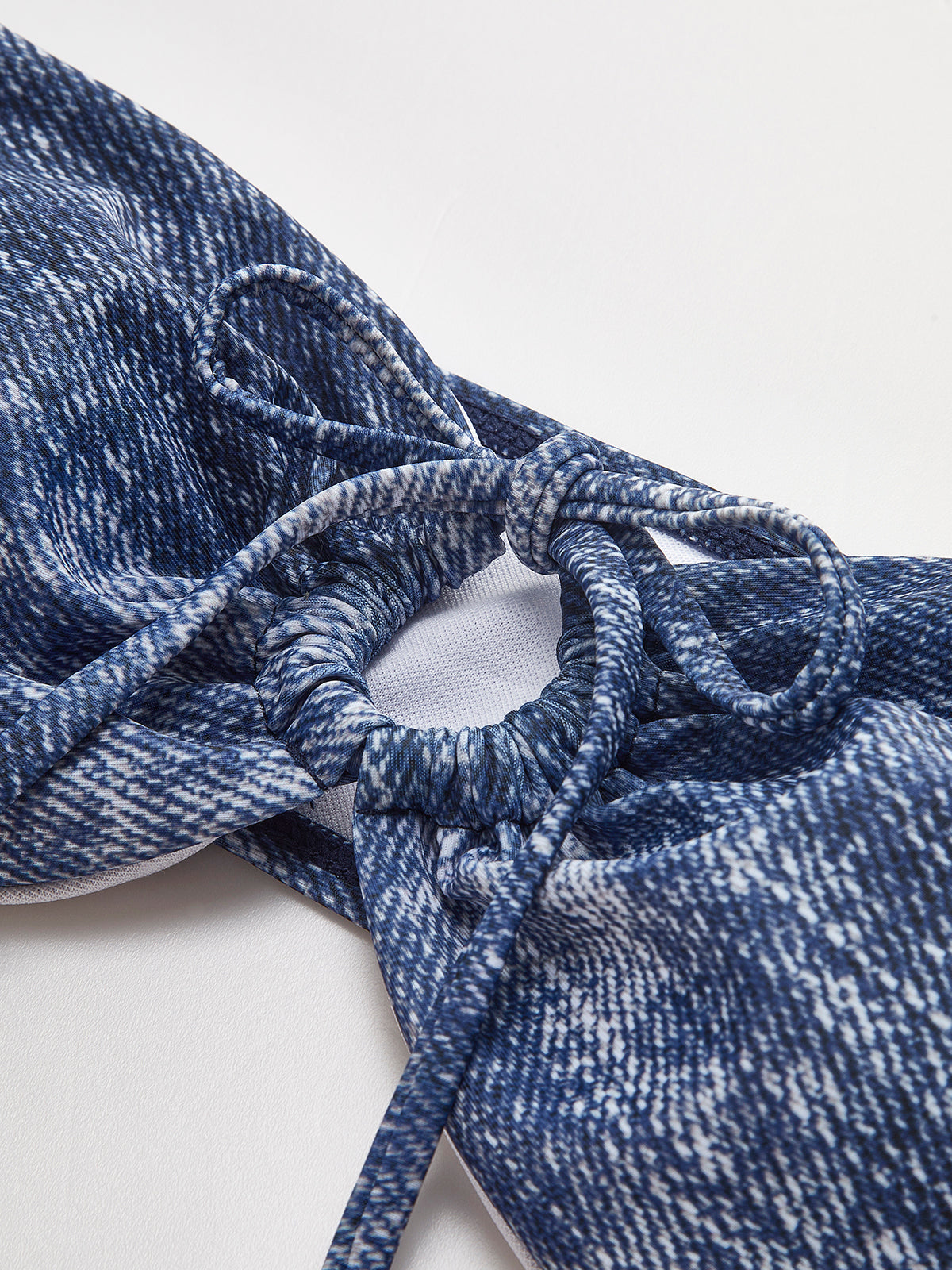 Bikini de dos piezas con top tipo bandeau y parte inferior con lazos laterales, pensado para un look moderno y relajado.