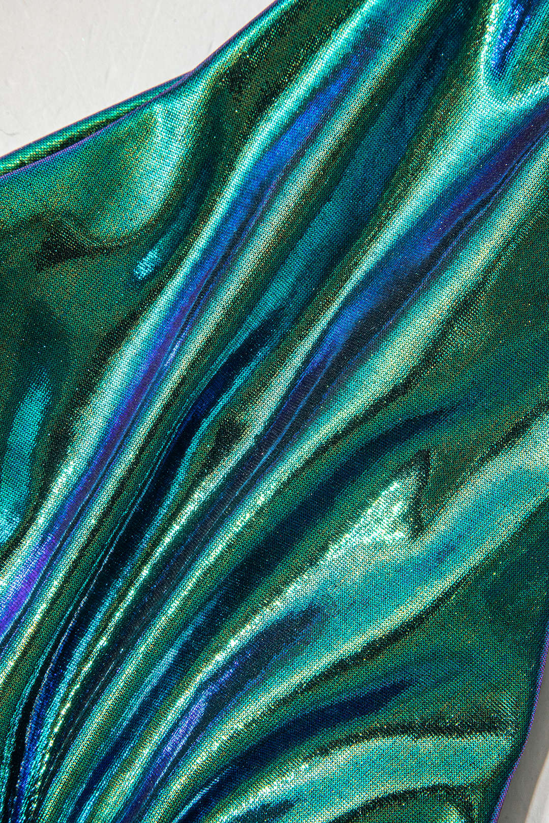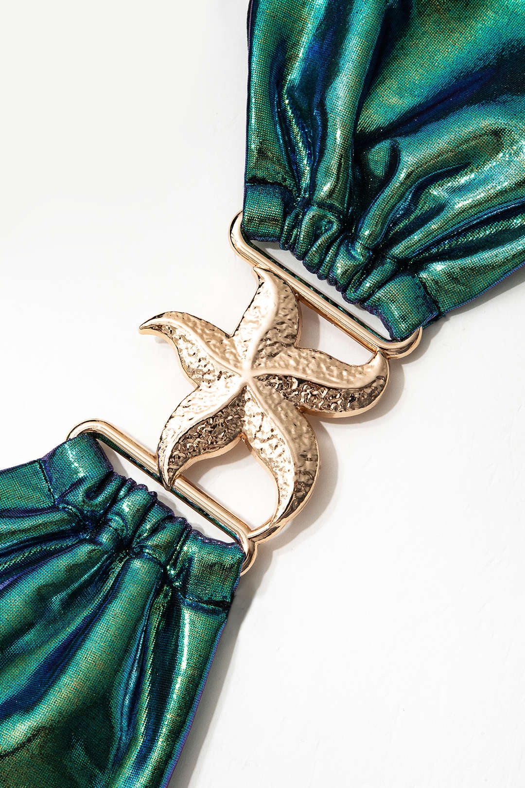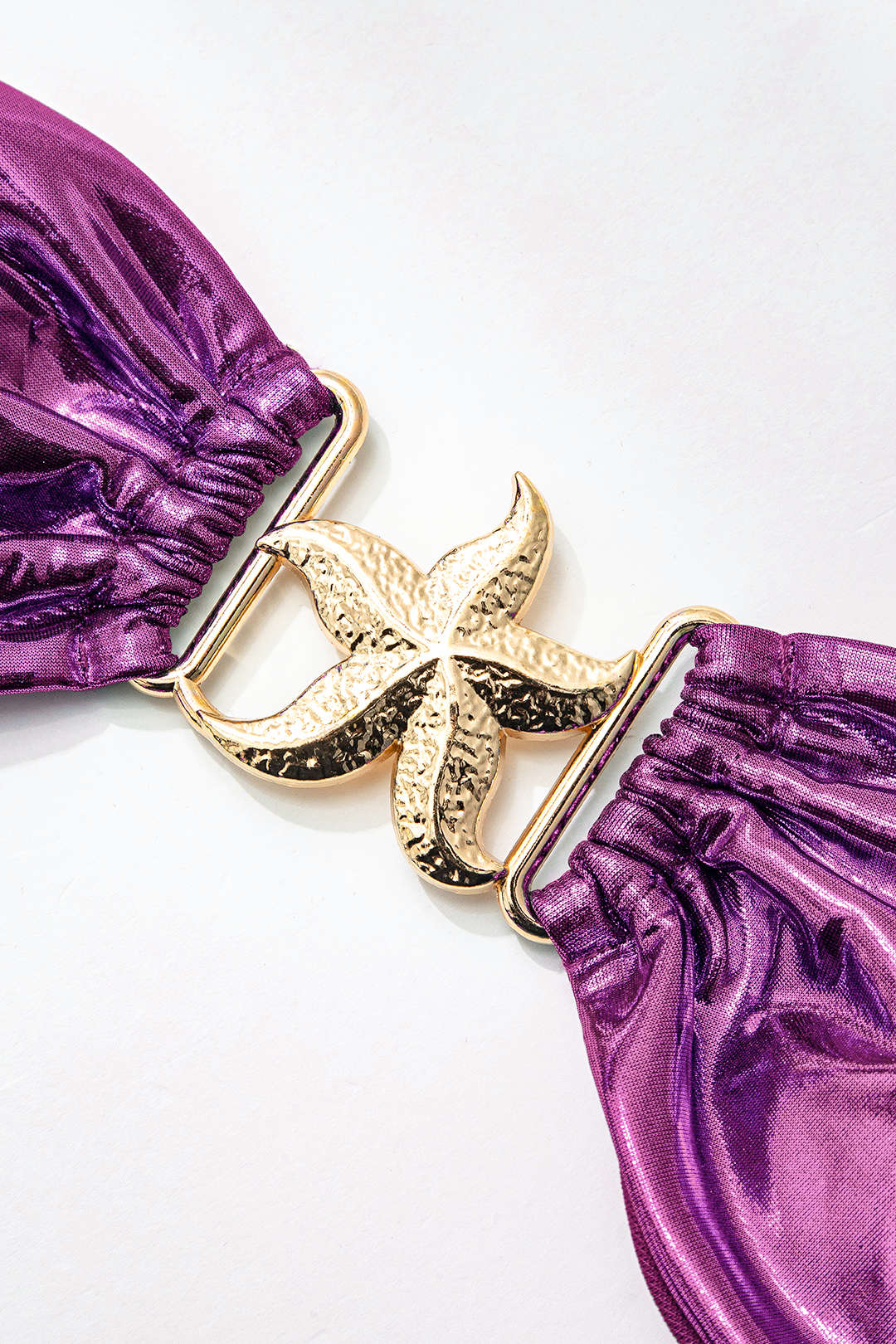 Bikini de dos piezas con acabado metalizado que aporta un efecto sofisticado y llamativo, ideal para un look de playa moderno y elegante.